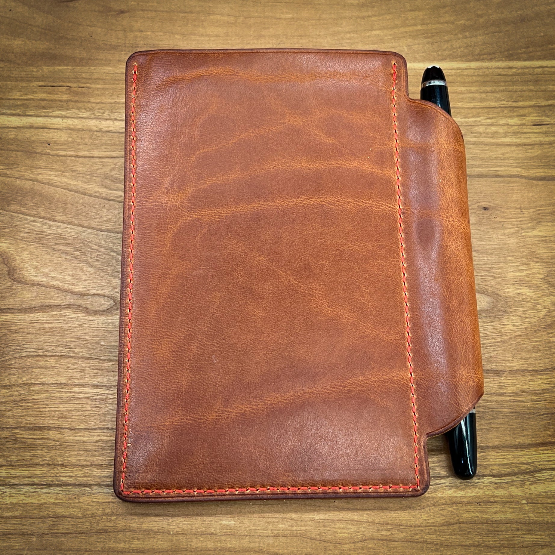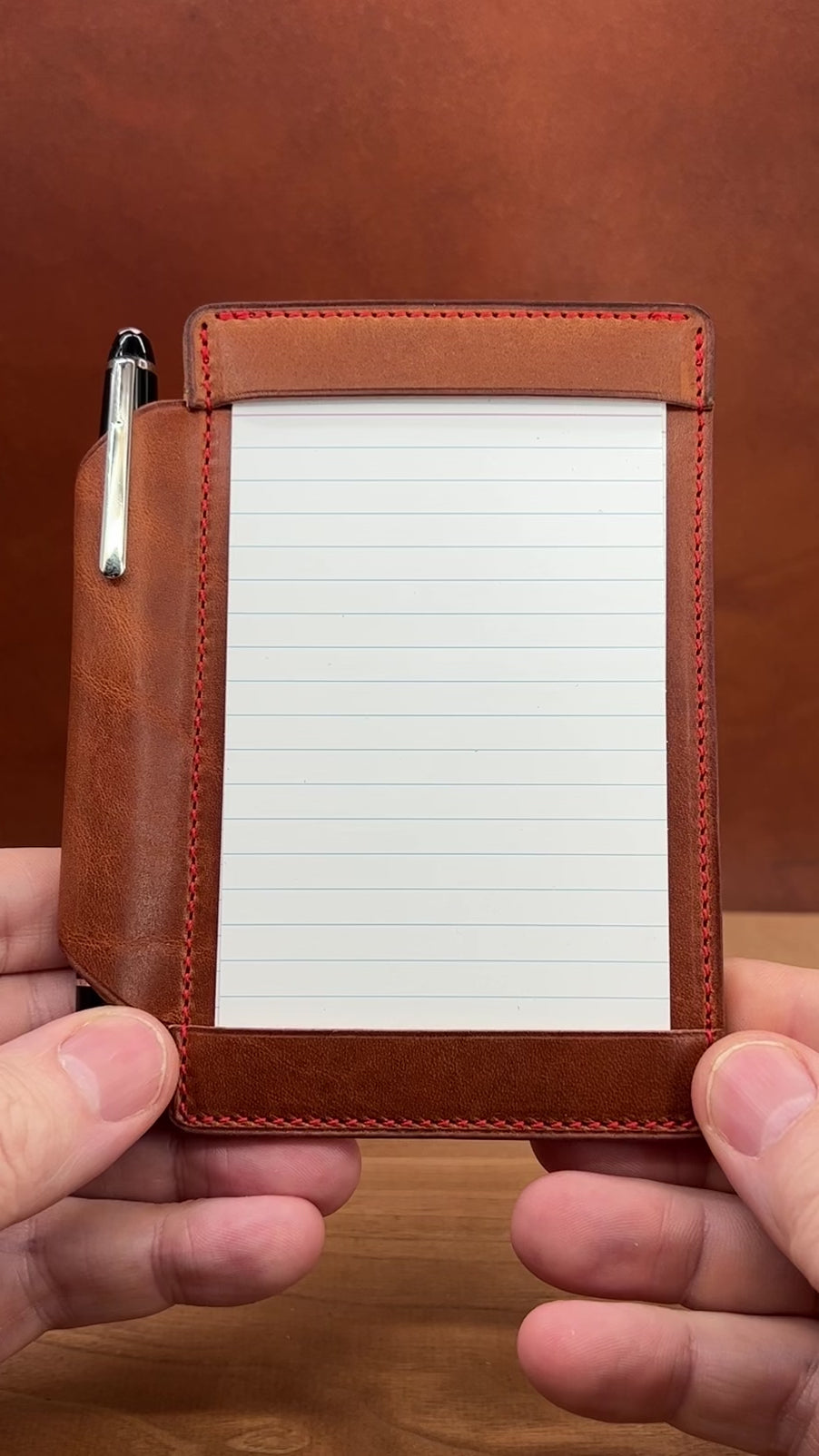 Ready to ship Pocket Jotter for Index Cards in Bourbon Horween leather with red stitching. Pictures and video are of the actual jotter being offered.