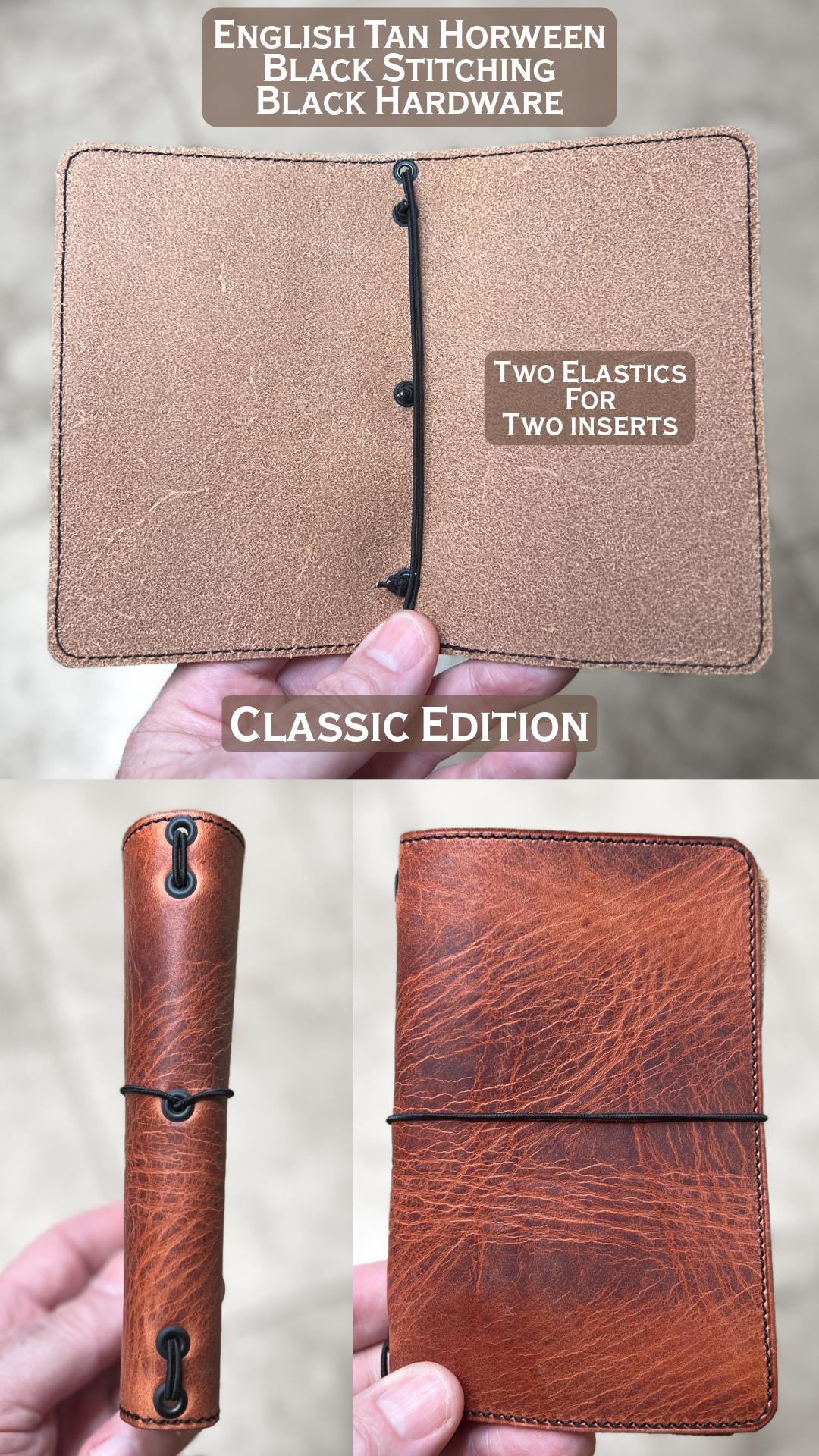 Handmade to order Traveler's style notebook cover in classic and deluxe options.